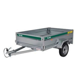 Remorque sur-équipée : Rehausses ridelles acier 40 cm + Bâche plate + Support et Roue de secours + Roue jockey
