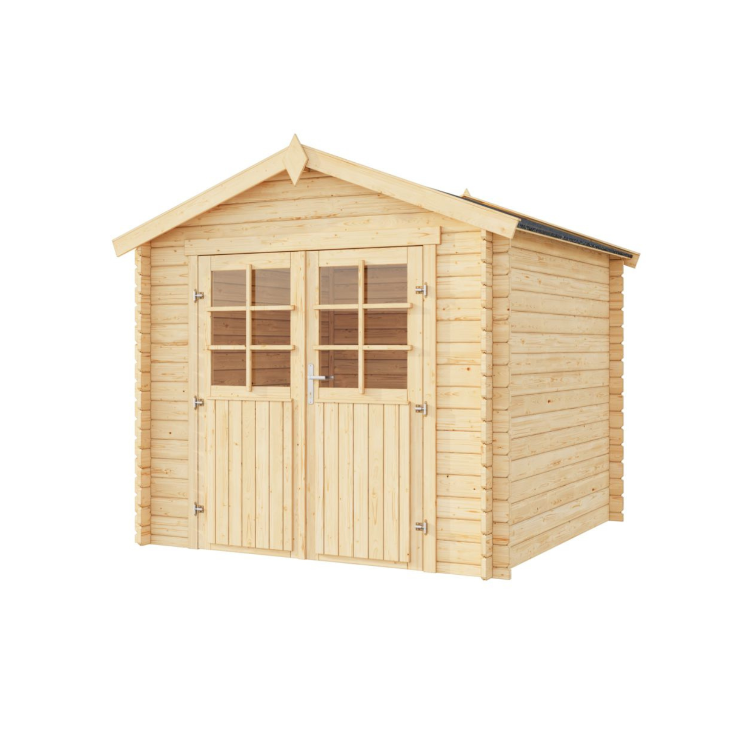 - Structure en madriers à emboîter de 28 mm d’épaisseur, garantissant stabilité et isolation contre le vent et les intempéries.